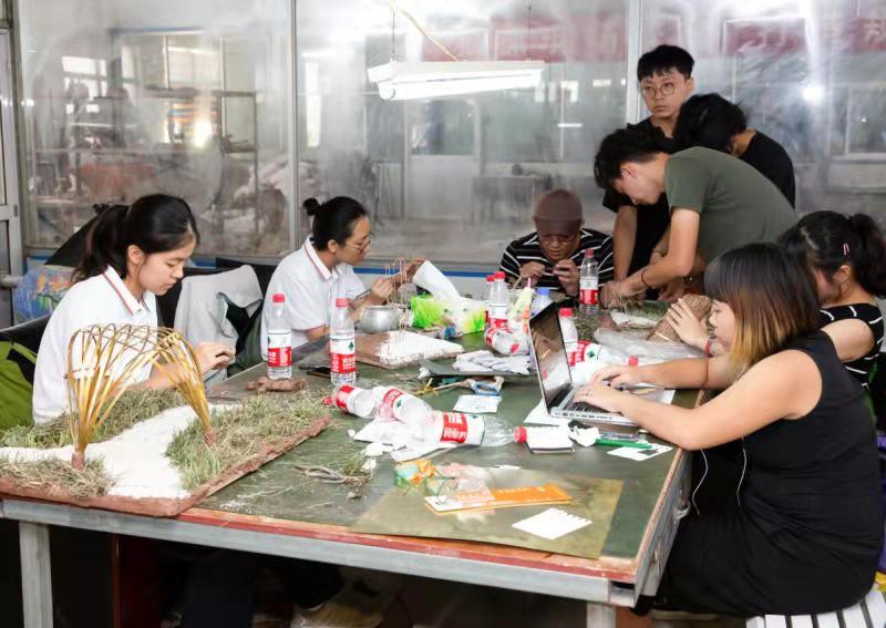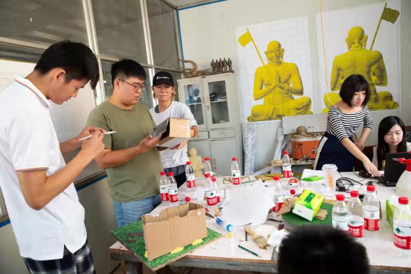 老師與學(xué)生們分組討論對銅藝小鎮(zhèn)局部改善的方案