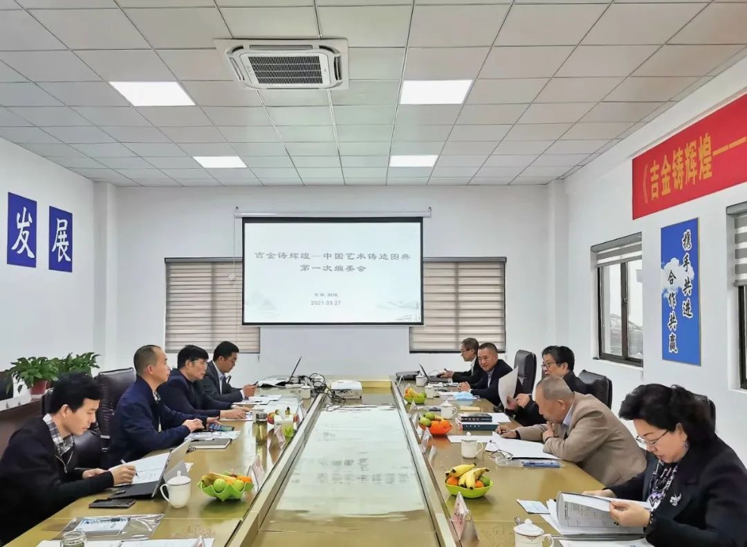 3月26日—3月27日,原中國傳統(tǒng)工藝研究會理事長、中國非物質(zhì)文化遺產(chǎn)專家委員會委員華覺明先生、上海博物館研究員譚德睿、中國科學(xué)技術(shù)史學(xué)會傳統(tǒng)工藝研究會秘書長王希吟、中國鑄造學(xué)會秘書長劉鴻超、《鑄造》雜志社原總編輯葛晨光、廣州美術(shù)學(xué)院副教授賴錫鴻、中國科技出版社編輯辦公室主任王曉義等一行來公司舉行由中國科學(xué)技術(shù)史學(xué)會傳統(tǒng)工藝研究會、中國鑄造學(xué)會、銅陵銅官府文化創(chuàng)意股份公司擬與中國科學(xué)技術(shù)出版社聯(lián)合出版中英文版著作《吉金鑄輝煌---古今中國藝術(shù)鑄造圖典》的第一次編委會會議。