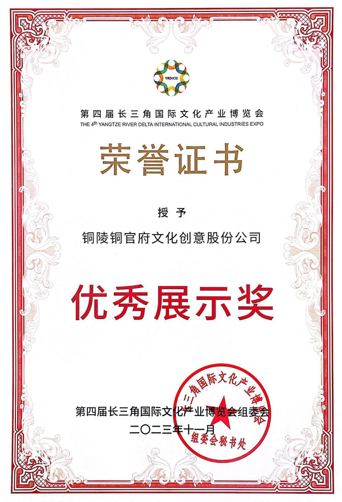 11月16日—19日,第四屆長(zhǎng)三角國(guó)際文化產(chǎn)業(yè)博覽會(huì)在國(guó)家會(huì)展中心(上海)舉行。我公司焚失法非遺技藝系列作品參展并榮獲“優(yōu)秀展示獎(jiǎng)”。展會(huì)現(xiàn)場(chǎng),參觀者零距離欣賞寫(xiě)真銅藝、彩銅工藝品以及景泰藍(lán)工藝品,感受中國(guó)傳統(tǒng)文化綻放出來(lái)的多彩魅力。銅官府作為文化產(chǎn)業(yè)示范基地,通過(guò)焚失法、景泰藍(lán)等傳統(tǒng)工藝的傳承與創(chuàng)新,借助國(guó)家級(jí)、國(guó)際化、綜合性的文博會(huì)平臺(tái),讓承載中國(guó)文化、賦予時(shí)代內(nèi)涵的銅文化走的更廣更遠(yuǎn)。